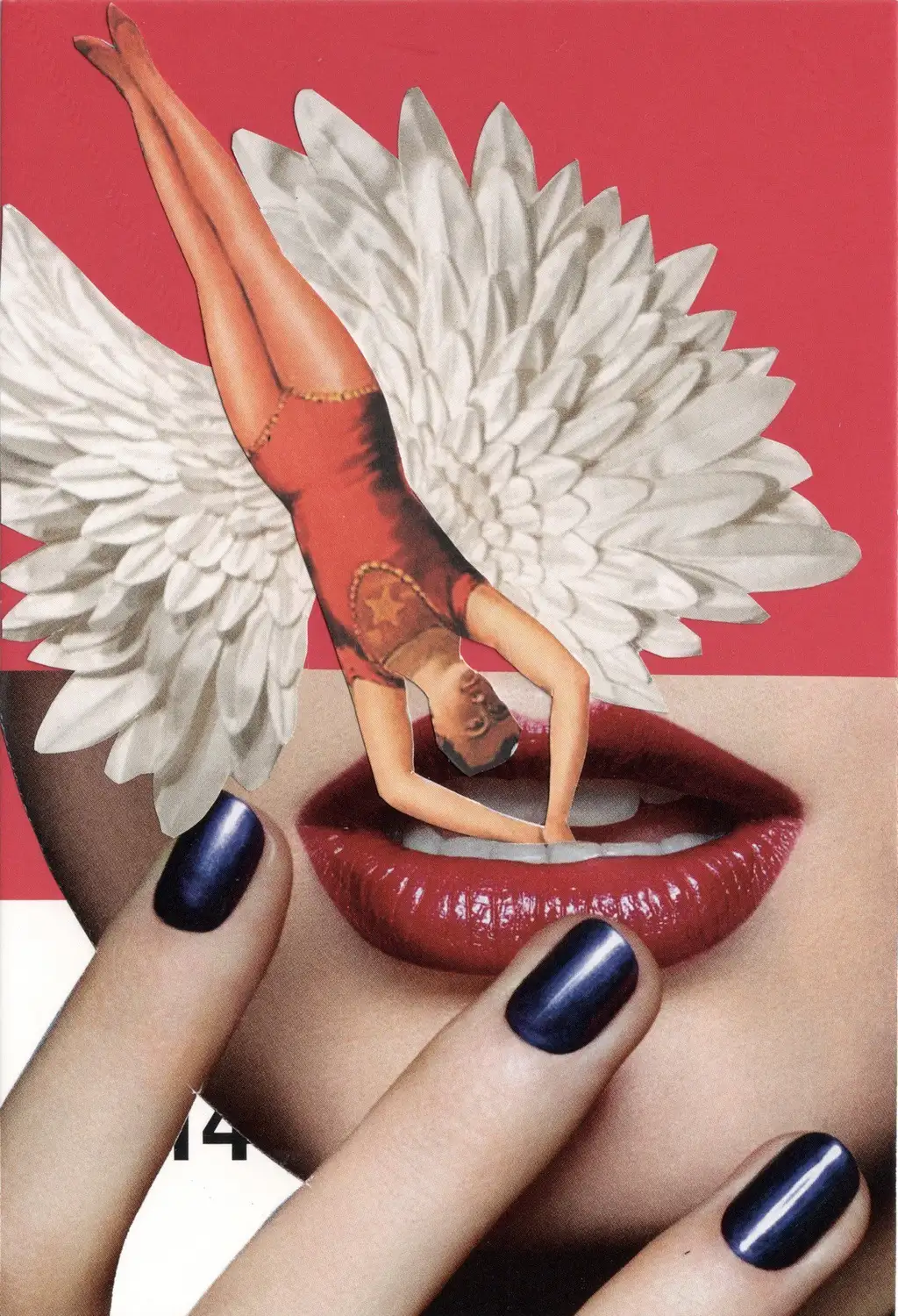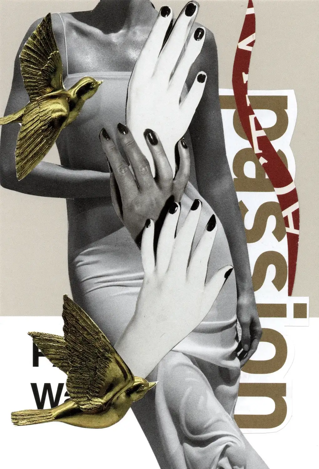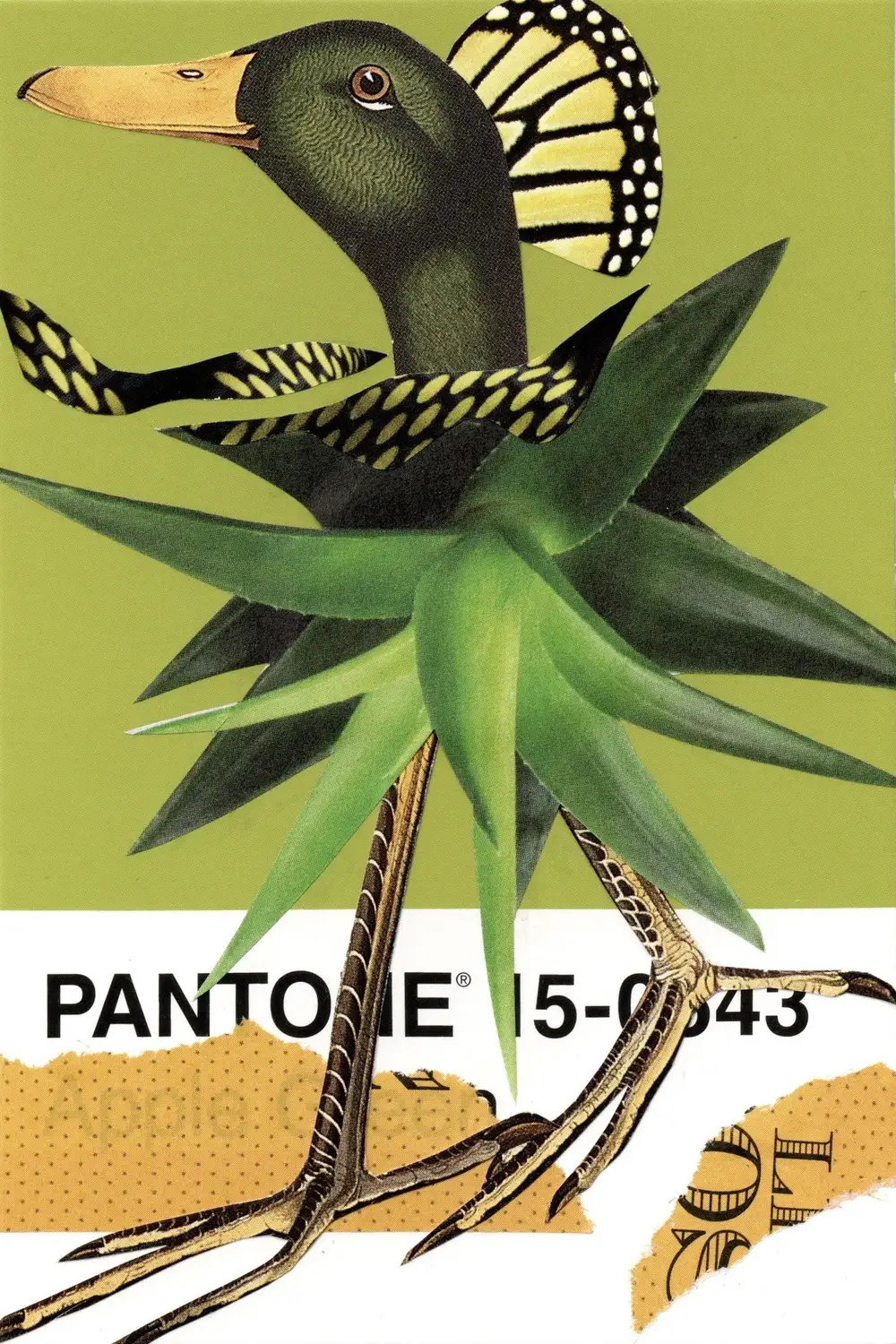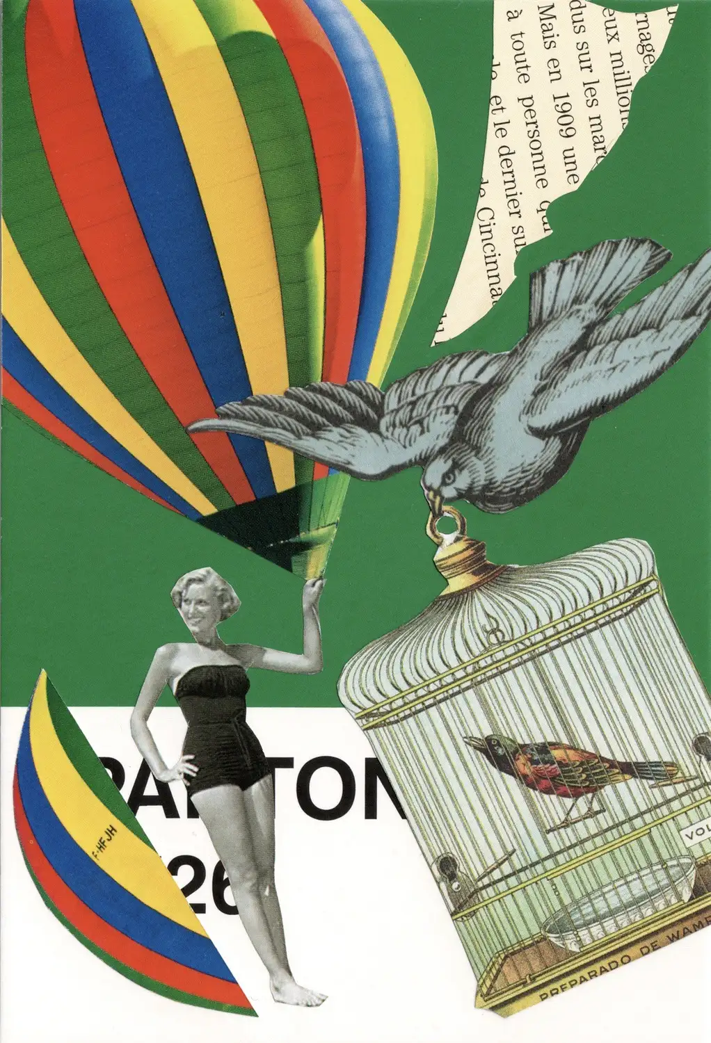I am creating a series of 1000 original postcard-sized collages, each crafted on Pantone postcards. This ambitious body of work transforms the humble postcard into a vessel for storytelling. Each piece is a fragment of narrative, playful or poignant, while the collective whole becomes a vast chorus of visual voices.