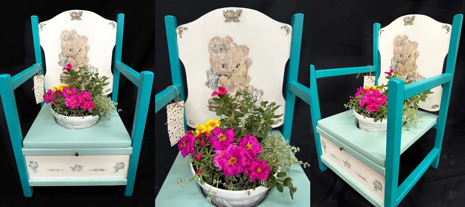 Check out some of the amazing refurbished/repurposed chairs transformed into pieces of Art by our local Artists and Community Members. Find a chair or other piece that you like and place your bid for a one of a kind piece of art. All proceeds to benefit Kids Needs.